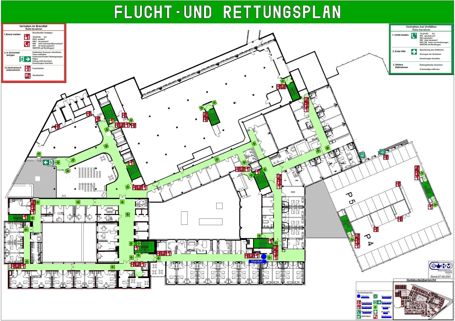 Weiterhin fertigen wir auch Flucht- und Rettungswegpläne bis zu einem Format A2. Hier wenden wir immer die neuesten Vorgaben der DIN ISO 23606 und der ASR A2.3 an.